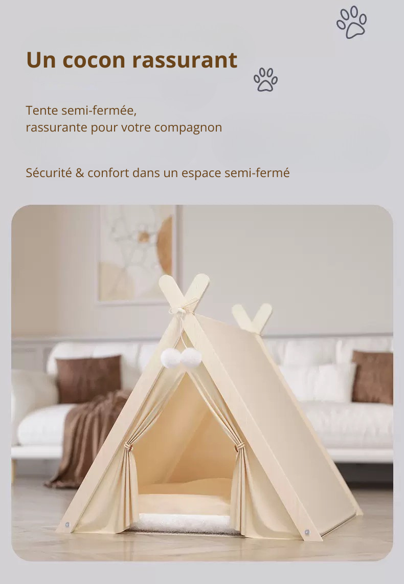 Couchage pour chat & chien – Maison cosy en bois, style tente